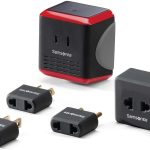The sleek black and red design of the Samsonite Converter/Adapter Kit adds a pop of color to your travel accessories while offering practical functionality. This one-size-fits-all kit includes a range of plug adapters to cover over 150 countries, making it perfect for international travel.